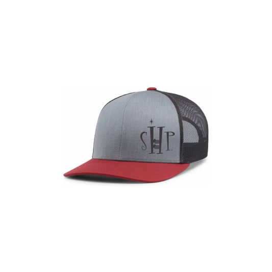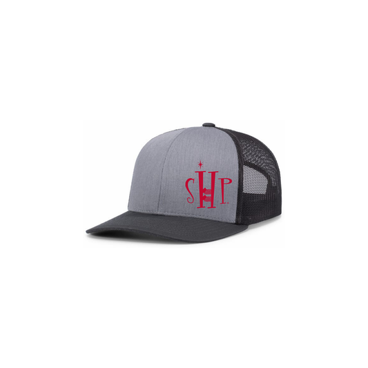 Trucker Snapback Hat w/ Embroidery (HEATHER GREY/CHARCOAL) - SHP Logo