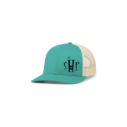 Trucker Snapback Hat (JAGUAR TEAL/BEIGE) w/ Embroidery - SHP Logo