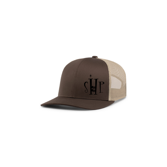 Trucker Snapback Hat (KHAKI/BROWN) w/ Embroidery - SHP Logo