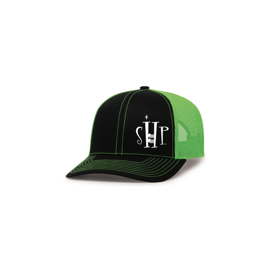 Trucker Snapback Hat w/ Embroidery (BLACK/NEON GREEN) - SHP Logo