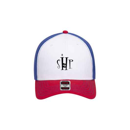 Trucker Snapback Hat w/ Embroidery (RED/WHITE/BLUE) - SHP Logo