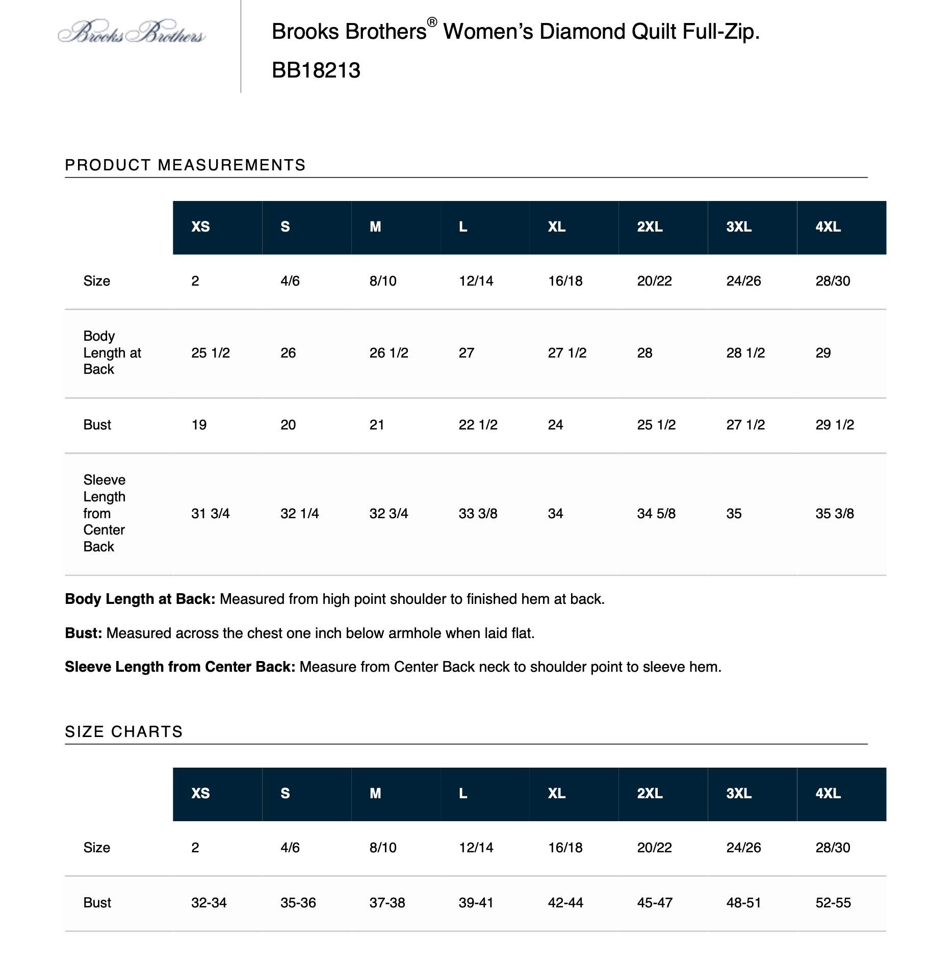 WOMEN'S Full Zip - Brooks Brothers Diamond Quilt (DEEP BLACK) w/ Embroidery